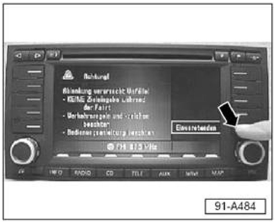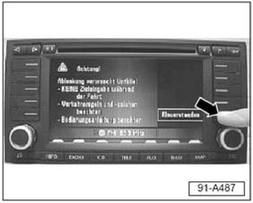If Map CD does not eject and the "Einverstanden" (Accept) screen appears: