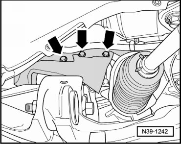 - Install drive axle shield and bolts - arrows - tighten bolts to 10 Nm.