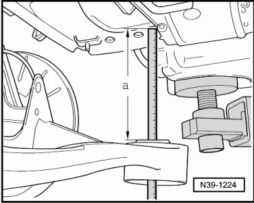 - Carefully lower subframe with front final drive to dimension - a -, approximately 200 mm.
