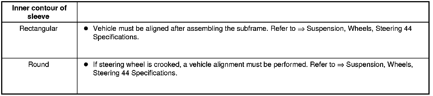 - Before bolting on subframe, check inner contour of bonded rubber bushing sleeve in subframe - arrow -.