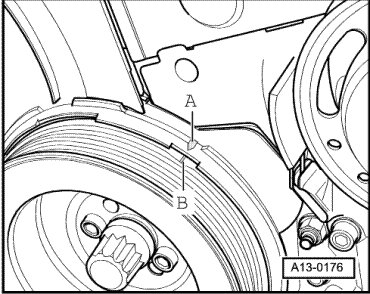 - Set engine to TDC. For this, notches - A - and - B - must stand across from one another.
