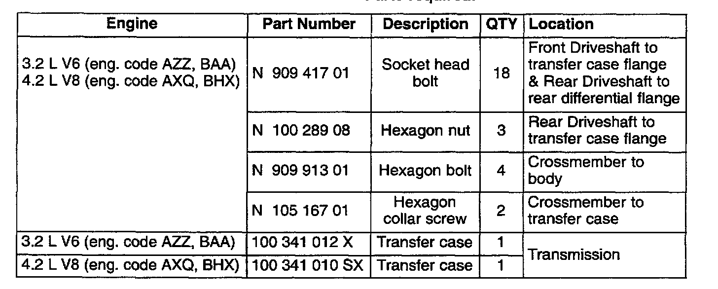 For vehicles from 4D014234 to 4D038730 with transfer case batch number 2.2