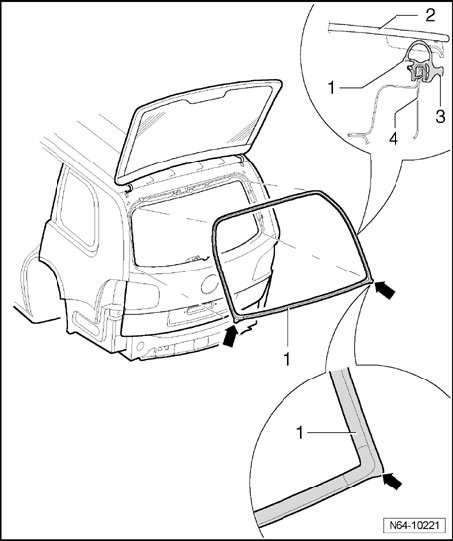 - The seal -1- for hinged window -2- of rear lid -4- is a hammer-stroke seal. After removing, it can be re-installed.