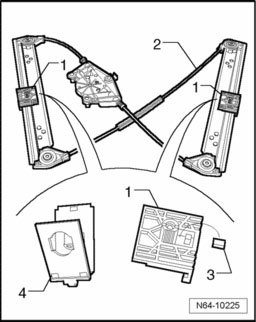 - Before inserting mounting elements -4- of door window, be absolutely sure that rubber buffers -3- are inserted into mounts -1- of window regulator -2-.