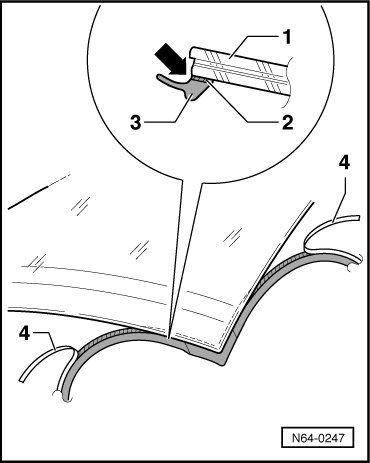- Install service sealing lip - 3 - exactly to contour on edge of glass - arrow -.