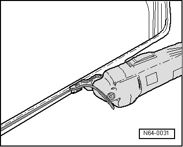- Cut back remaining material on window flange using the electric cutter (V.A.G 1561 A) and the cutting blade (V.A.G 1561/8), do not remove all residue under any circumstance.