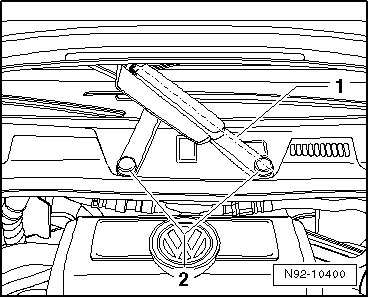 - Remove both nuts - 1 - and - 2 - from the wiper arm shafts.
