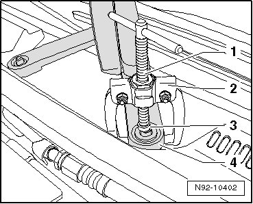 - Mount the Puller (T10369/5) - 2 - onto the end of the wiper arm - 4 - as shown in the illustration.