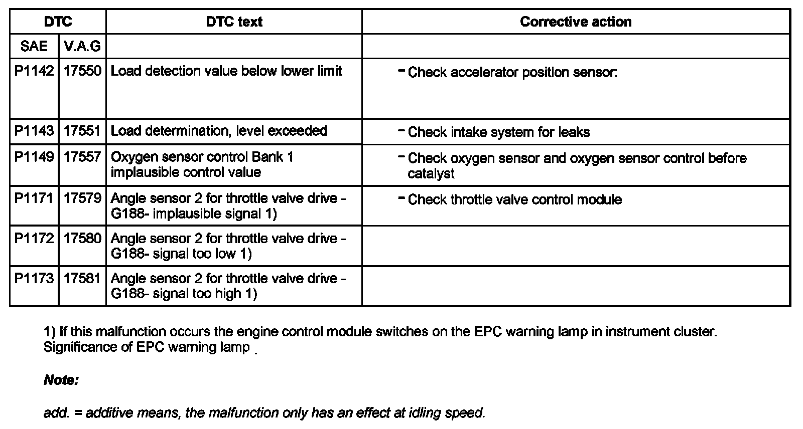 DTC P1142 - P1173: