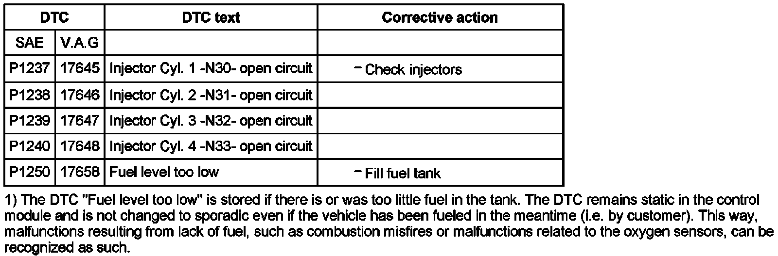 DTC P1237 - P1250: