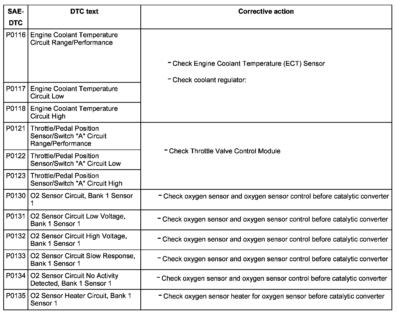 DTC P0116 - P0135: