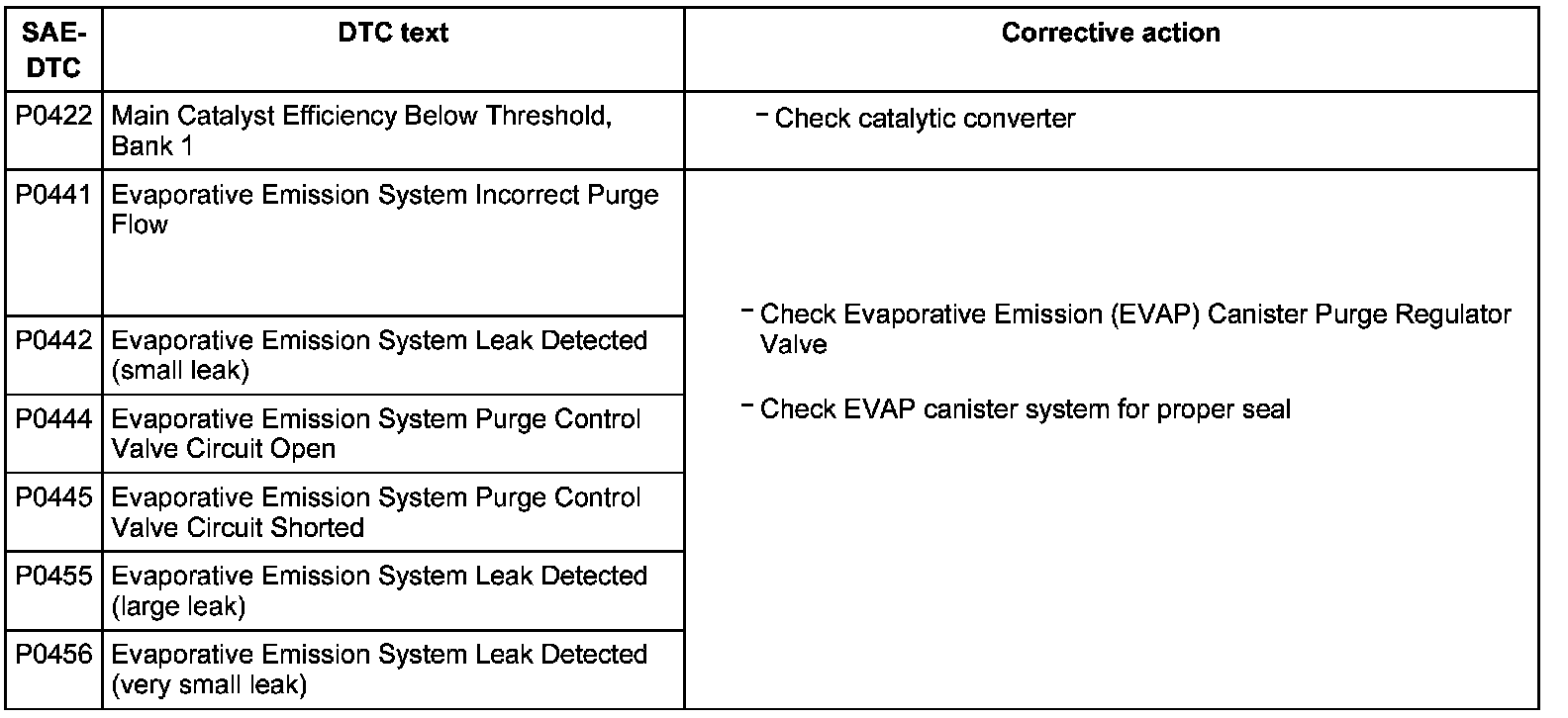 DTC P0422 - P0456: