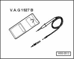 - Connect voltage tester V.A.G 1527B to disconnected connector of after-run coolant pump V51, using adapter cables from connector test set V.A.G 1594C. LED must light up.