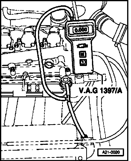 - Disconnect connection hose between intake manifold and fuel pressure regulator at intake manifold and connect to T-piece of turbocharger tester (VAG1397A).