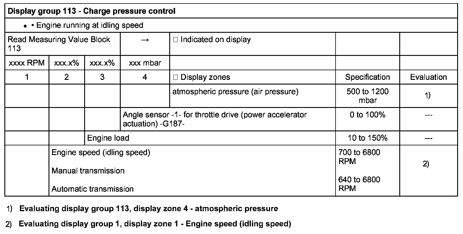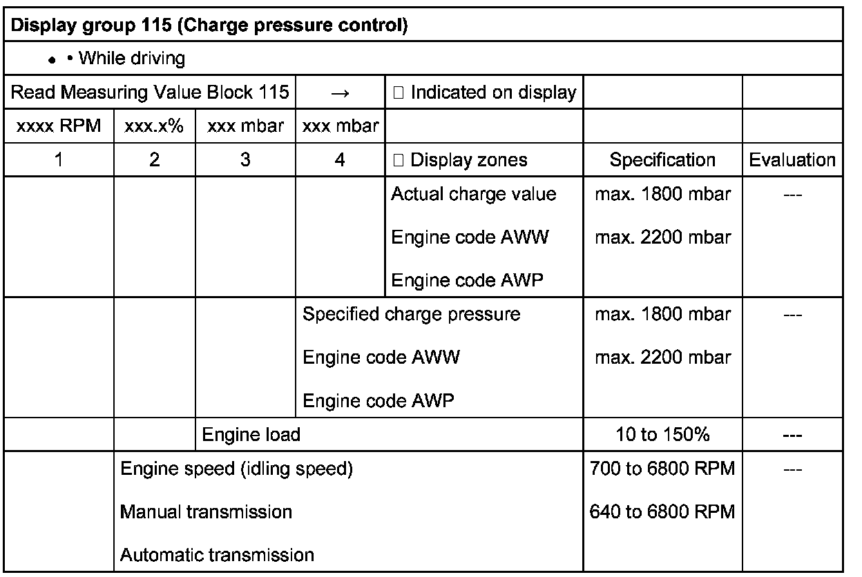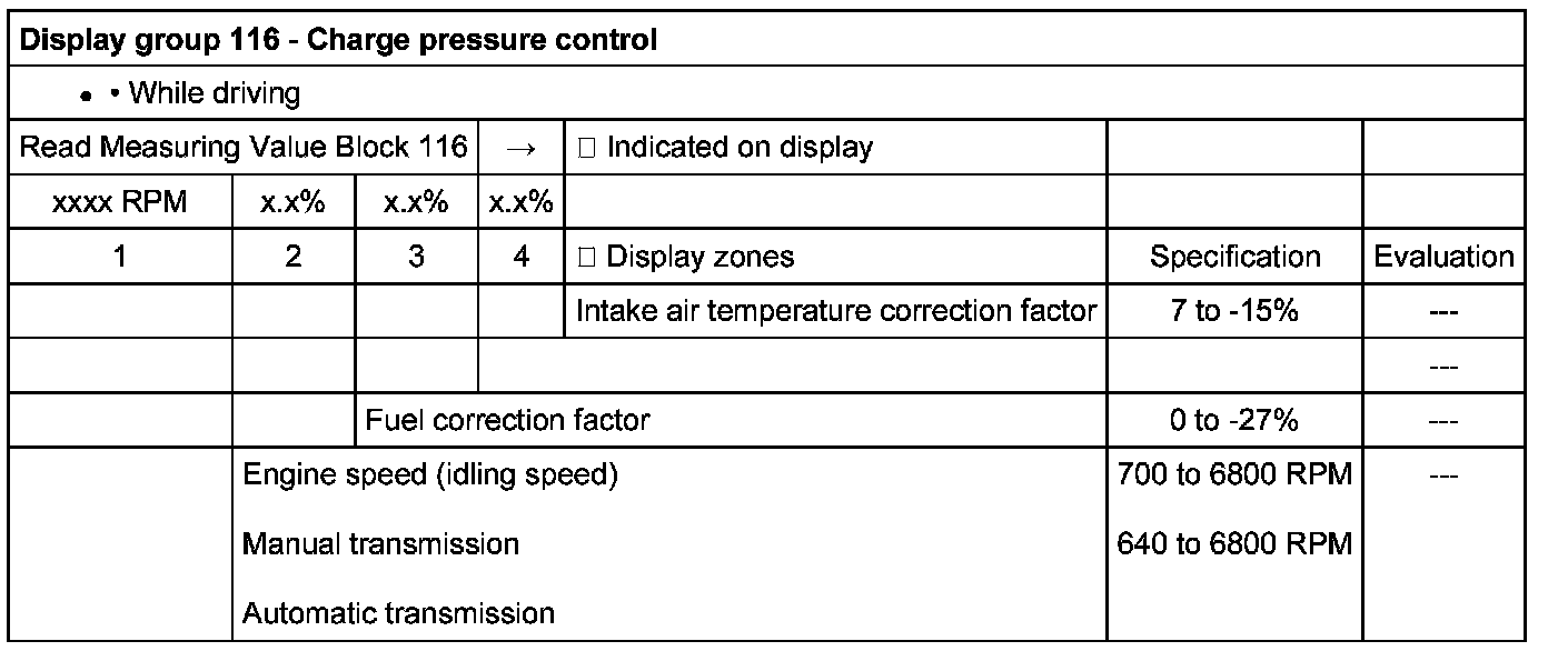Measuring Value Blocks, Evaluating Display Groups 110 To 119 (Charge Pressure Control)