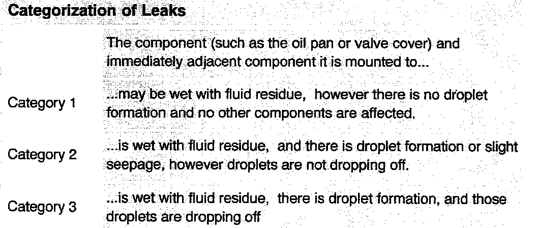 ^ Use the table to categorize oil leaks and properly determine their root cause.