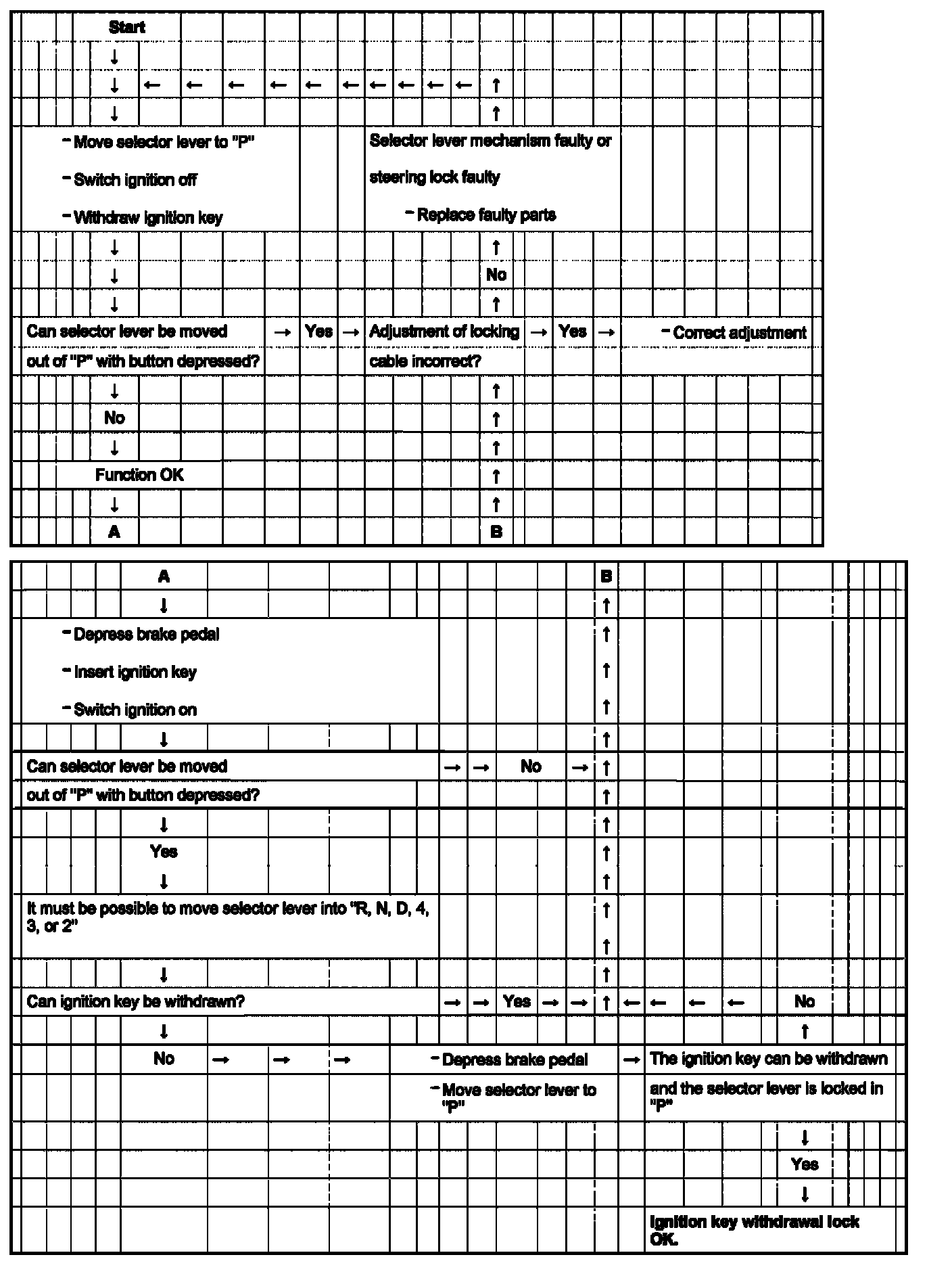 Checking operation of the ignition key withdrawal lock, 09A, 5 Spd. A/T