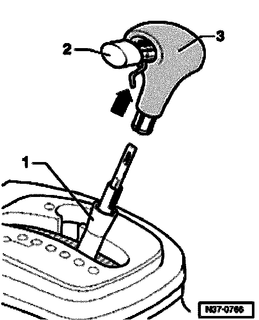 Selector lever handle, removing and installing, 09A, 5 Spd. A/T