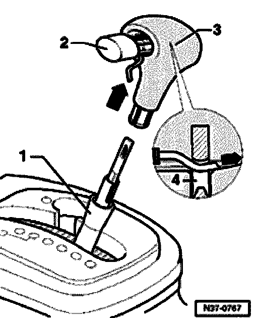 - Slide sleeve on selector lever downward and check color of plastic part in handle (arrow).