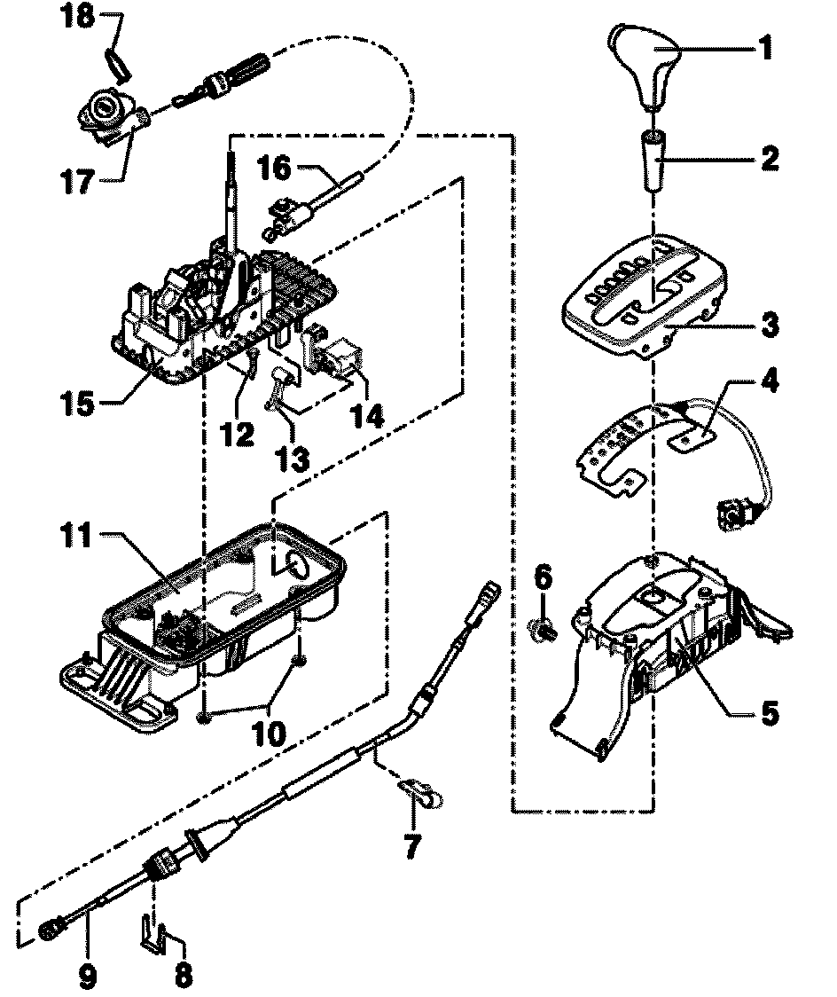 Selector mechanism, disassembling and assembling, 09A, 5 Spd. A/T