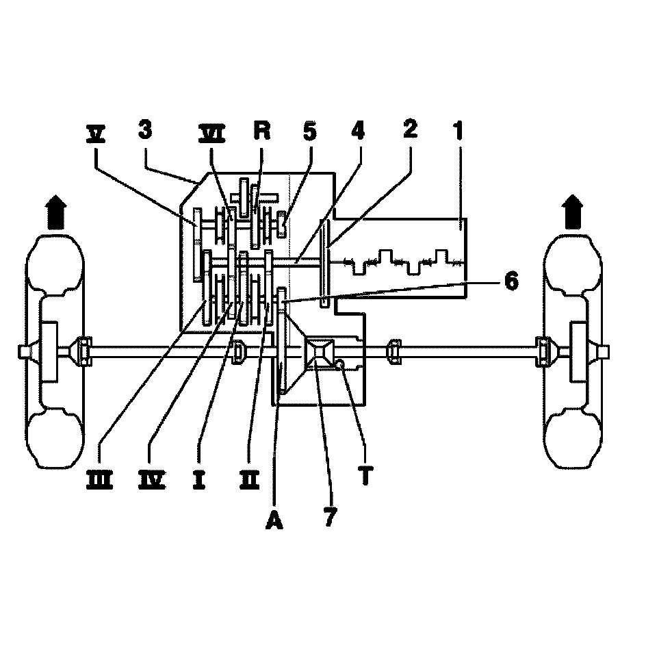 Transmission layout, 02M, 5 and 6 Spd. M/T