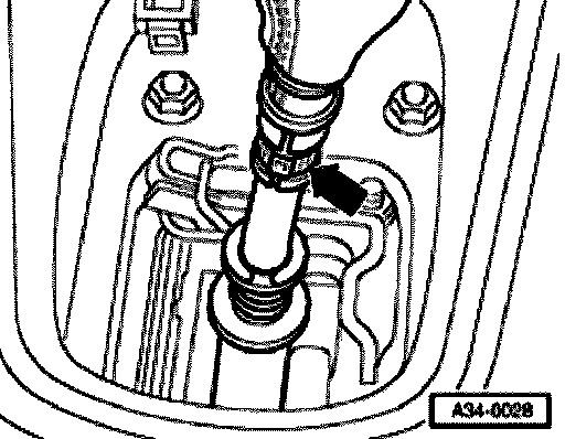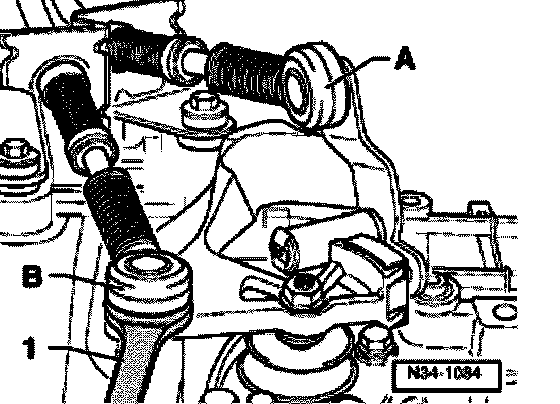 - Pry gate selector cable -A- or gear selector cable -B- off transmission using a 13 mm open end wrench.