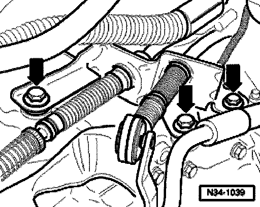 - Remove cable support bracket from transmission (arrows). If necessary, unclip hose at cable support bracket first.