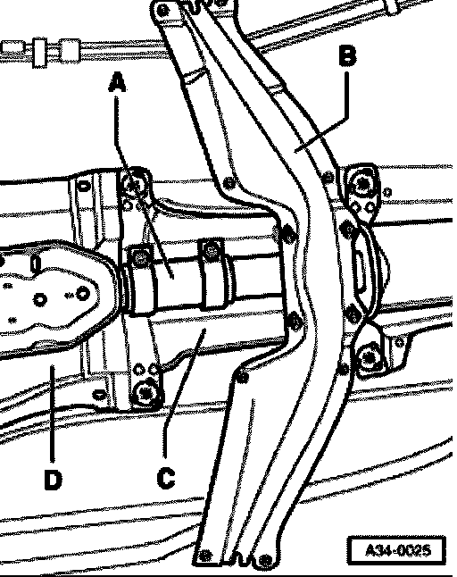 - Remove cross support -B- below exhaust system.