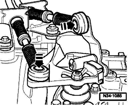- Press gear selector cable onto transmission selector lever and gate selector cable onto relay lever (arrows).