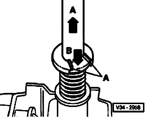 - Pull shift lever in arrow direction -A- and at same time push down spacer bushing onto stop with a screwdriver in arrow direction -B-.