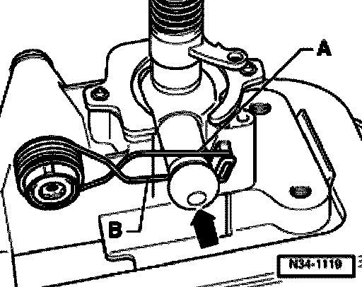 - Insert spring so that spring extension -A- lies above pin (arrow).