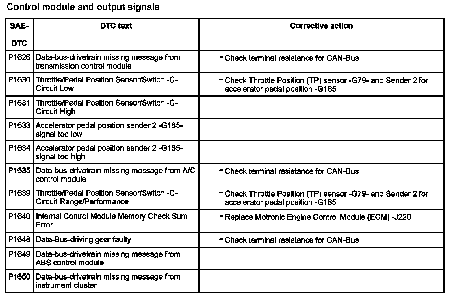 DTC P1626 - P1650: