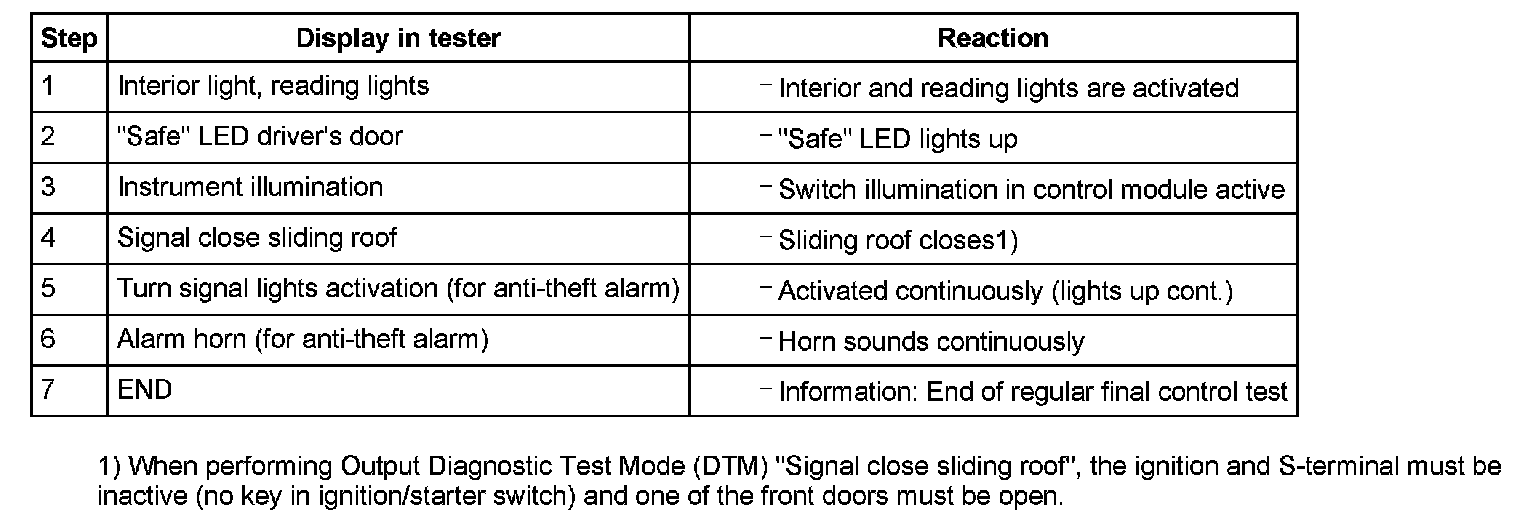 Output Diagnostic Test Mode (DTM), Vehicles From 06.01 On