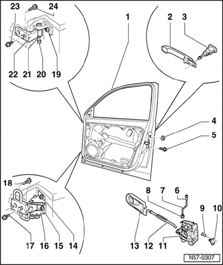 - Bolts for door hinges must always be replaced after loosening.