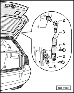 - Lift securing clip - 2 - using a screwdriver and remove gas-filled strut from ball stud - 1 -.