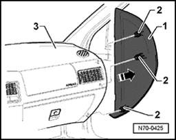 - Loosen cover - 1 - with clips - 2 - from instrument panel - 3 -.