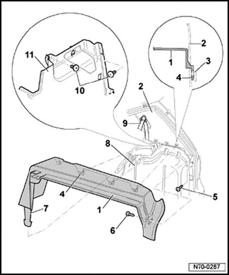 Luggage Compartment Cover Support, Removing and Installing (Golf)