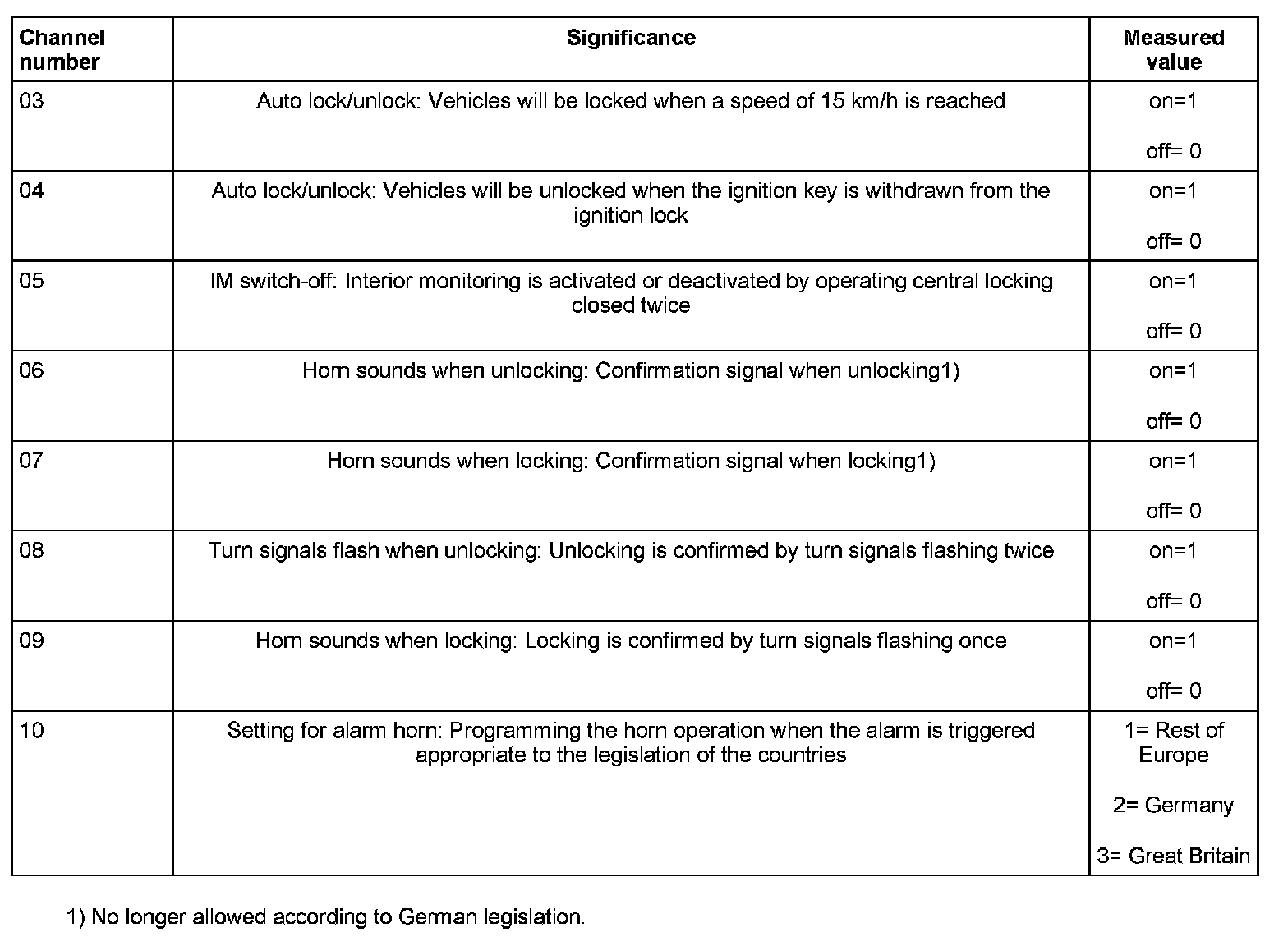 - Press buttons -0- and -8- (channel number 08 switches the turn signals on or off when unlocking).
