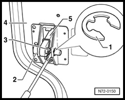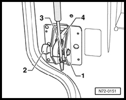- Remove pin - 2 - from backrest - 4 -, hold spring - 3 - in place using pliers and remove while doing this.