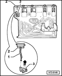 - Press rod - 1 - for handle - 2 - out of locking hook - 3 - - arrow -.