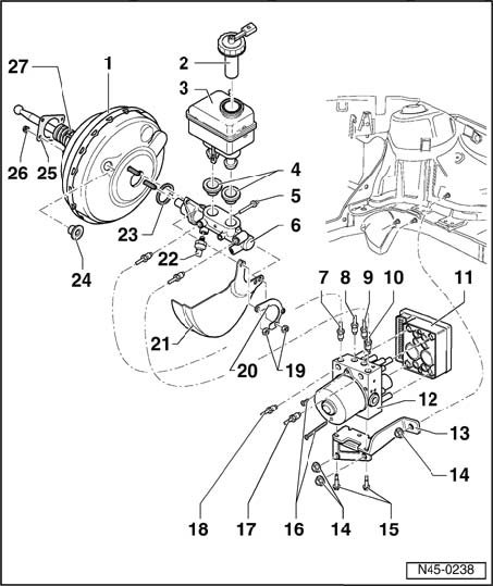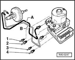 ^ Sender 1 for brake booster -G201- is installed on vehicles with ABS/EDL/ASR/ESP