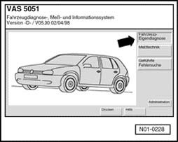 All functions which could previously be performed with V.A.G 1551 can also be performed with the new tester VAS 5051 in the operating mode "Vehicle On Board Diagnostic".
