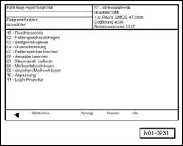 ^ If the display does not indicate as described in the work sequence, refer to Operating instructions for Vehicle Diagnosis, Testing and Information System VAS 5051.