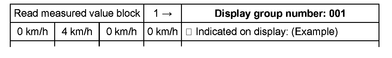 The reading of measured value blocks in display group number 002 must be undertaken when driving off slowly. Then the ABS Control Module (w/EDL) -J104- will store the first usable voltage signals provided by the speed sensors and display these as a fixed value in the measured value block.