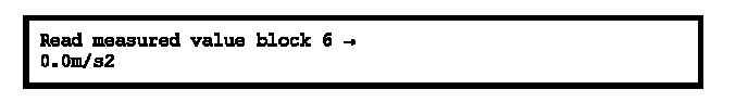 - Display in display zone 2 (with vehicle stationary) e.g. -9.8 � 1 m/s2. A negative result equates to the forces during a right turn.