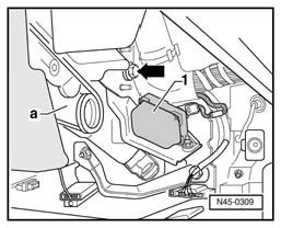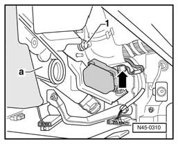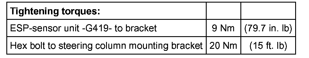 - The ESP-sensor unit -G419- -1- is secured with a bracket on the steering column bearing bracket -a-.
