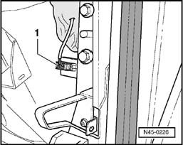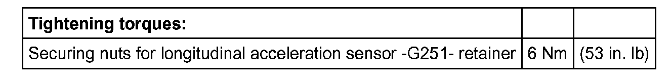 - Installation position: The angled section (arrow) of longitudinal acceleration sensor - G251- -1- must face retainer -2-.