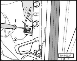 - Lift retainer -1- off longitudinal acceleration sensor -G251- -2- with a screwdriver.