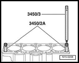 - To centralize, screw guide pins from 3450/2 A into front outer threaded holes for cylinder head bolts.