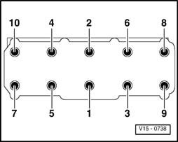 ^ Carefully clean sealing surfaces of cylinder head and cylinder block. Ensure thereby that surfaces are not scored or scratched (if abrasive paper is used, grade must not be less than 100)